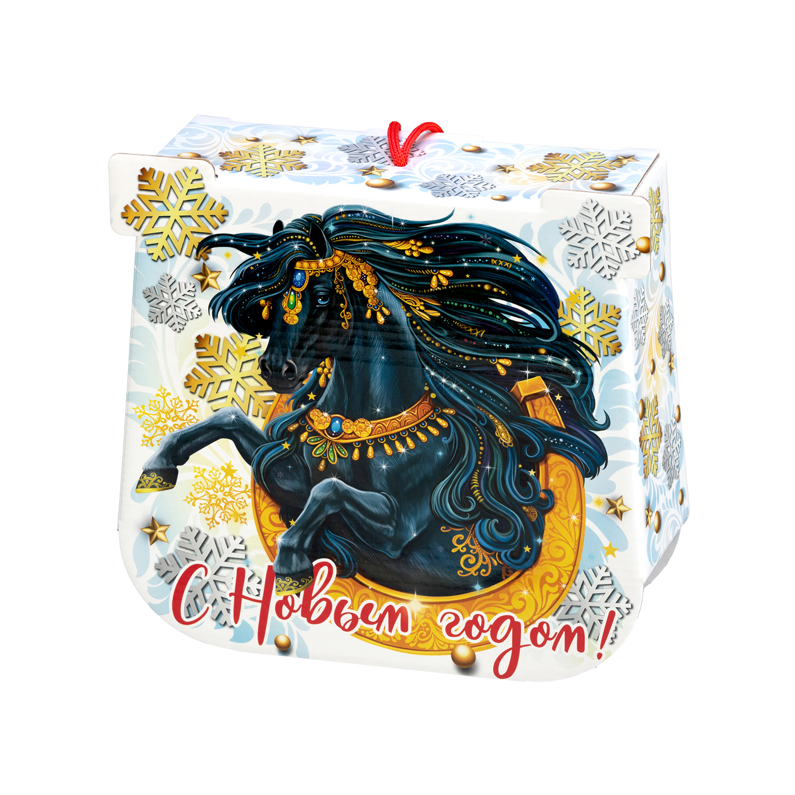 Как при помощи новогоднего подарка создать праздничное настроение на все 12 месяцев? Все просто - нужно подарить сладкий набор с изображением символа наступающего года. Немногие знают, но подкова с древних времен считается символом удачи - не просто так ведь именно ее в древности вешали при входе в дом. Данный подарочный набор повесить не получится, но вот зарядиться теплыми эмоциями от вкусных сладостей можно без труда! За счет оригинального оформления и вкусного сладкого наполнения, такой презент можно смело вручить сластене абсолютно любого возраста! Неповторимый вкус отборных сладостей и яркий дизайн упаковки никого не оставят равнодушным!